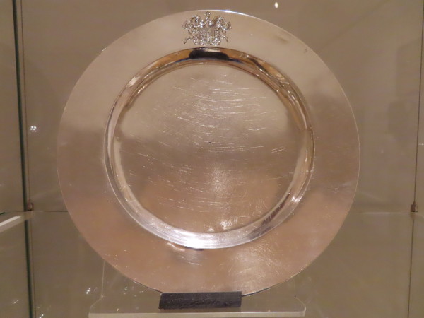 This plain silver dinner plate has a rim engraved with the armorials of George Baillie of Jerviswood and Mellerstain, and his wife Grisell, fifth daughter of Sir Patrick Hume, 1st Earl of Marchmont.