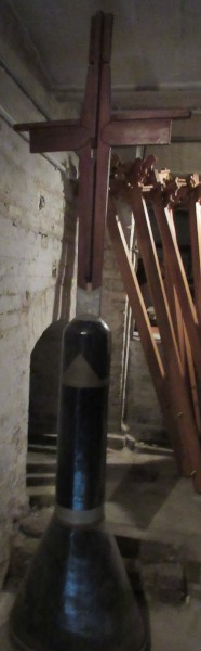 Oak cross mounted on a World War I ebonised steel and brass artillery shell