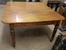 Victorian mahogany extending dining table, rectangular divided top, globular and ring turned tapering legs, brass caps and castors; restorations